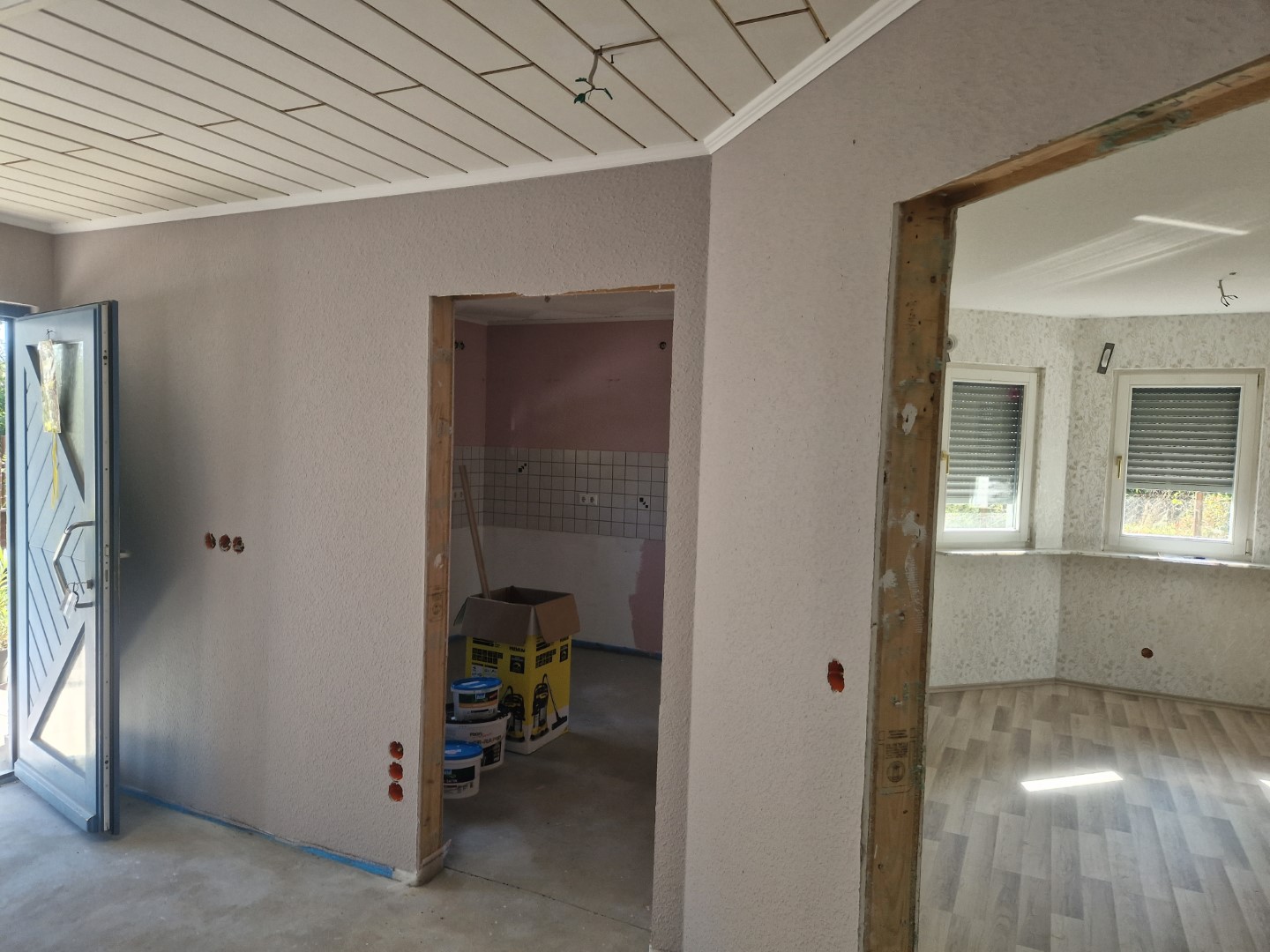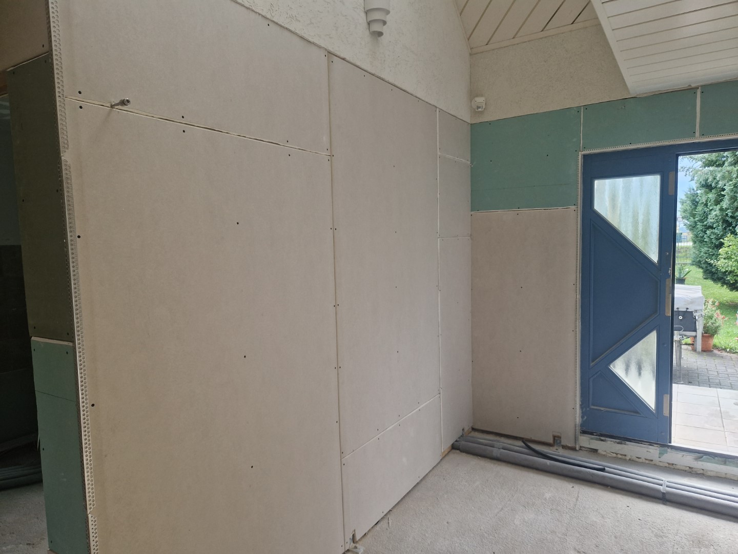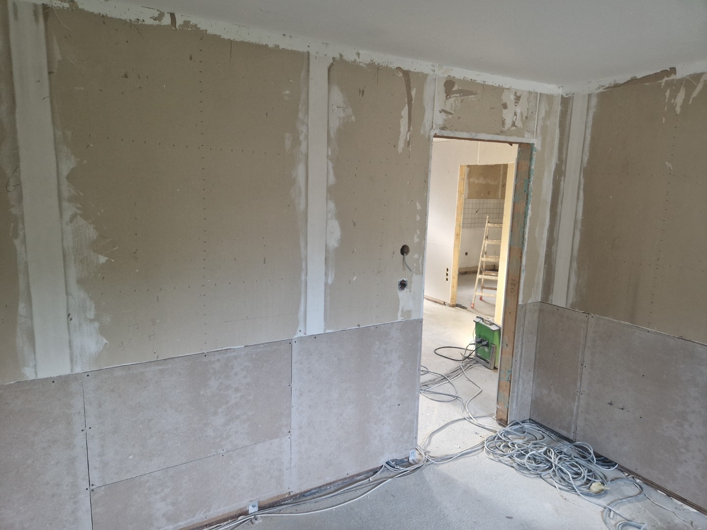 Hier wurde das Innere eines Einfamilienhauses aufwendig innen saniert. Hier bedienten wir die fast unser komplettes Portfolio inkl. Trockenbauarbeiten, Wand- und Bodengestaltung.