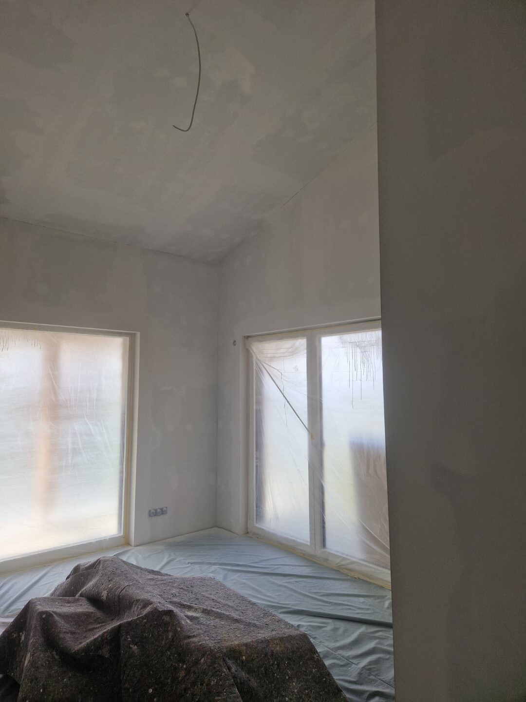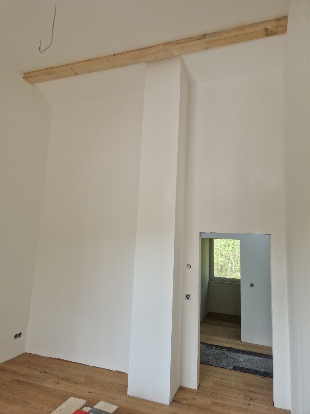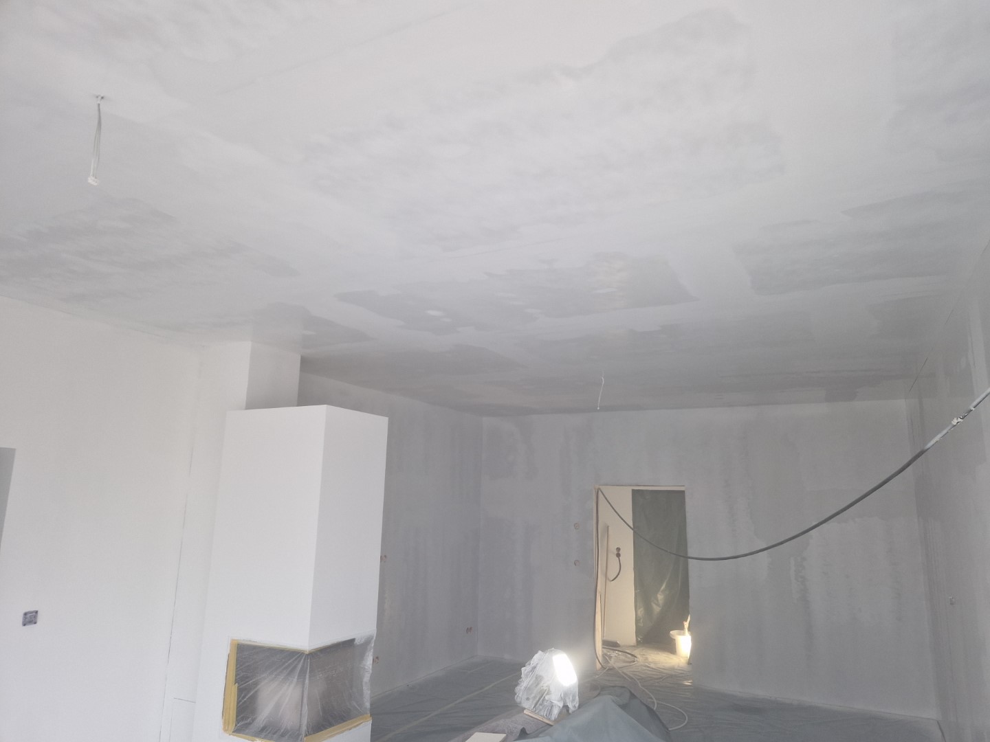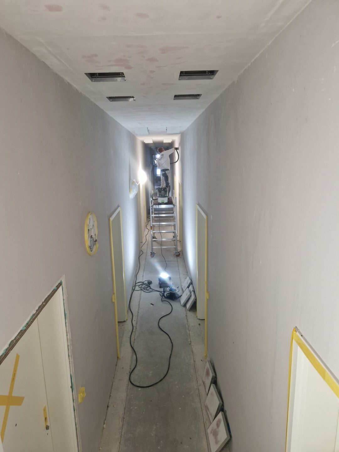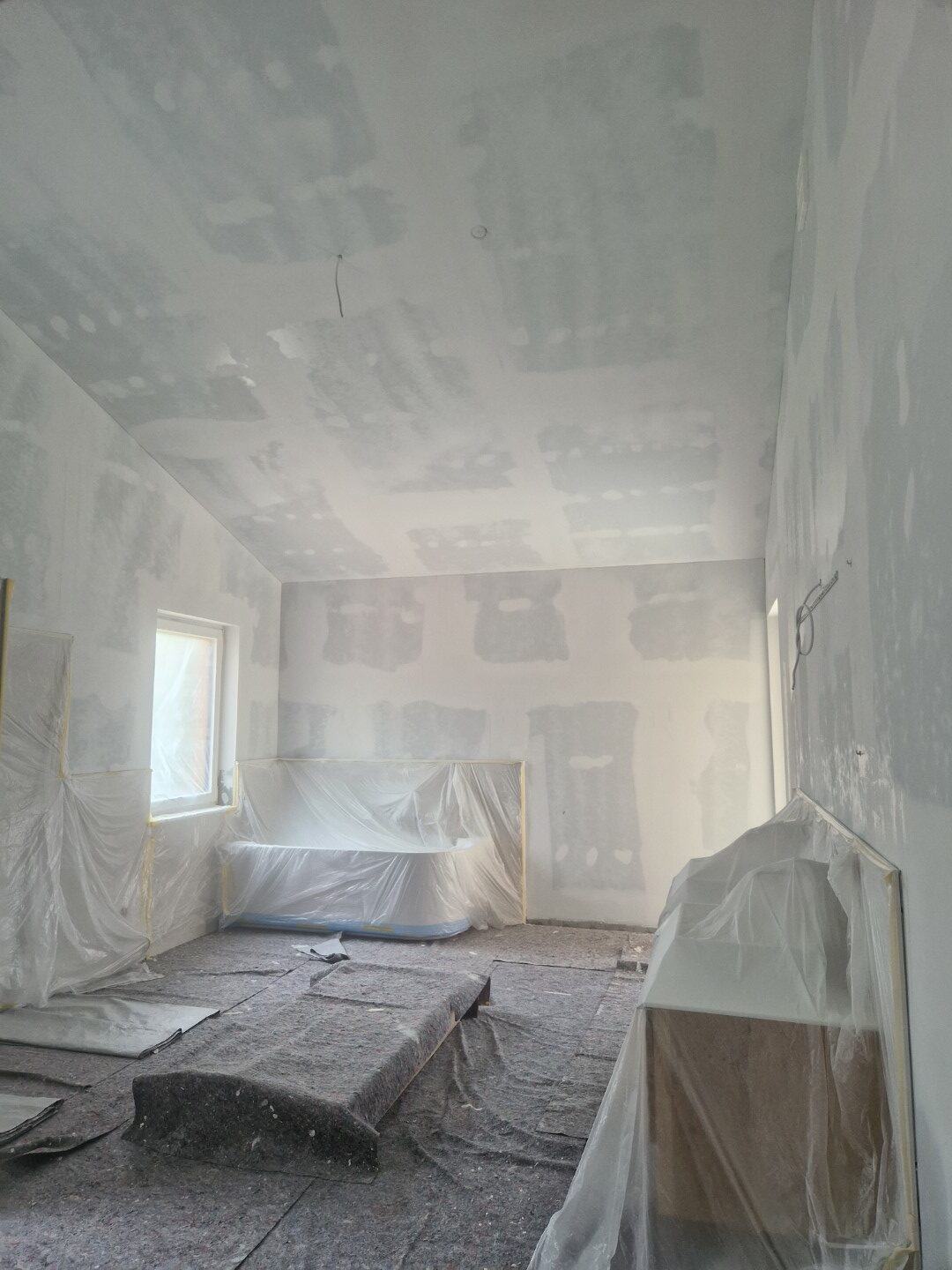 Hier erledigten wir mit unserem Airless-Sprühsystem die Malerarbeiten im Anschluss an die Trockenbauarbeiten.