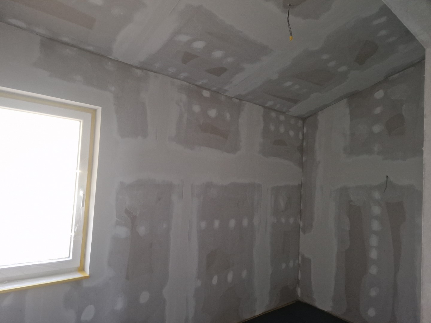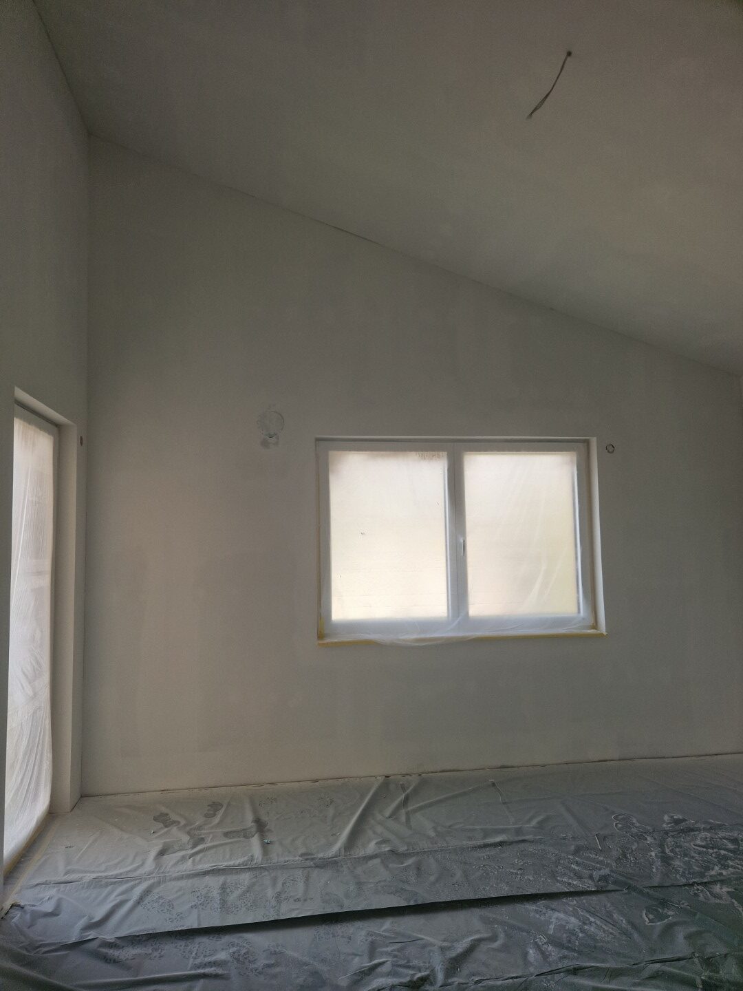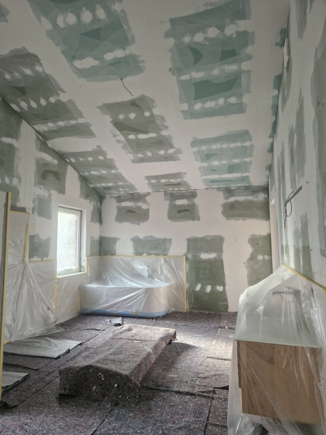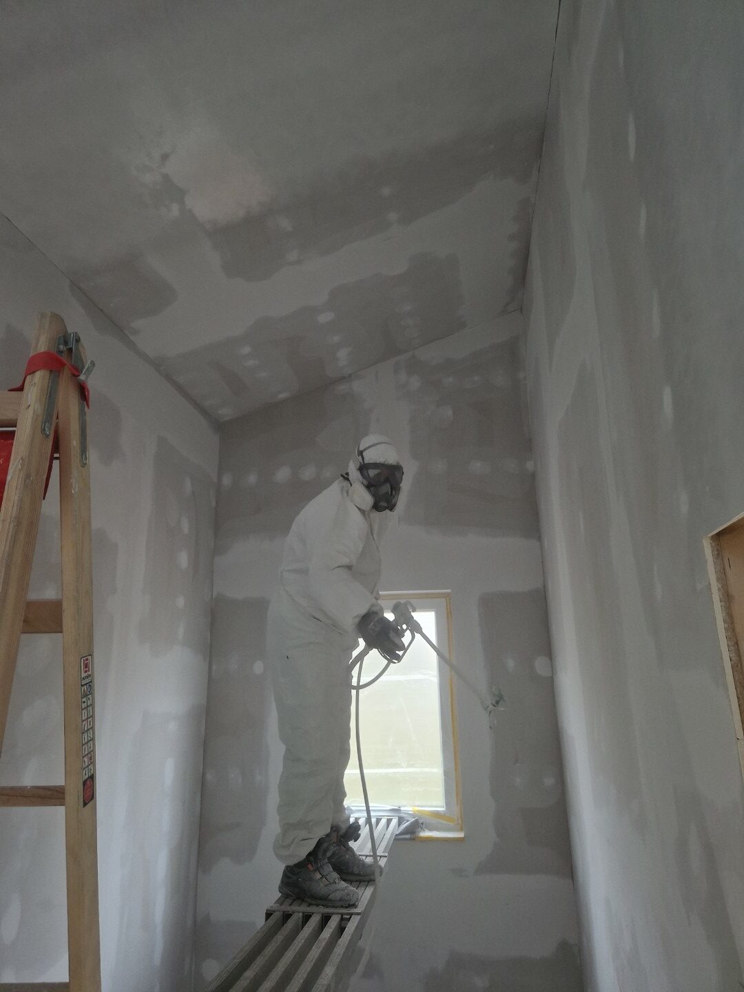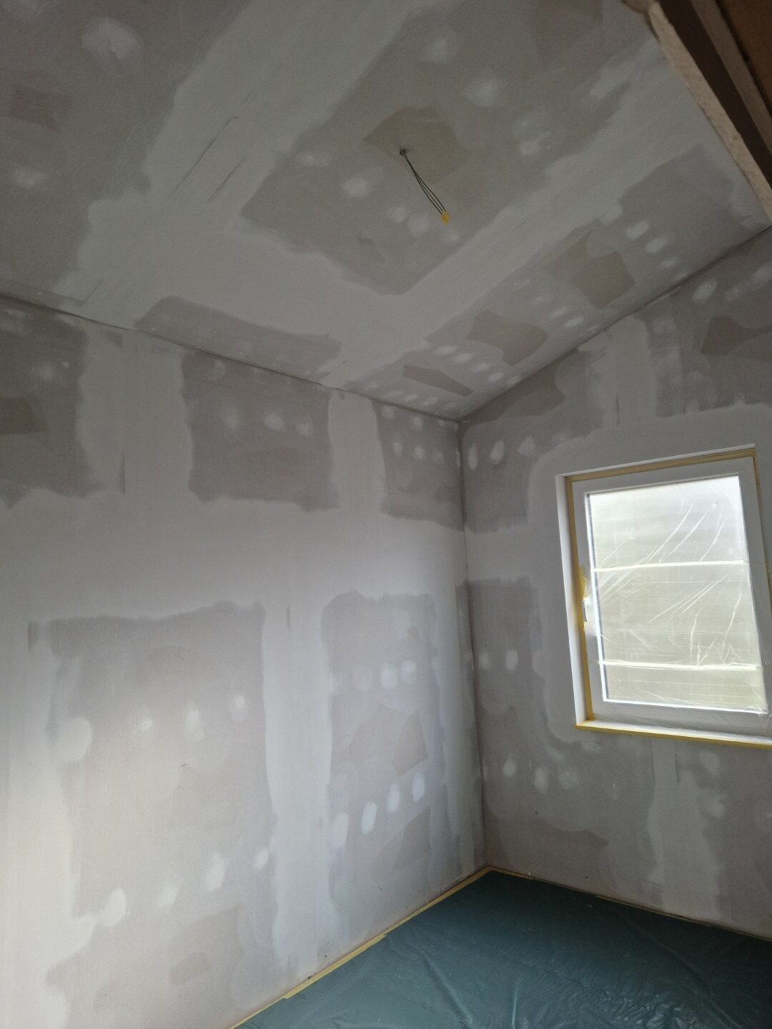 Hier erledigten wir mit unserem Airless-Sprühsystem die Malerarbeiten im Anschluss an die Trockenbauarbeiten.