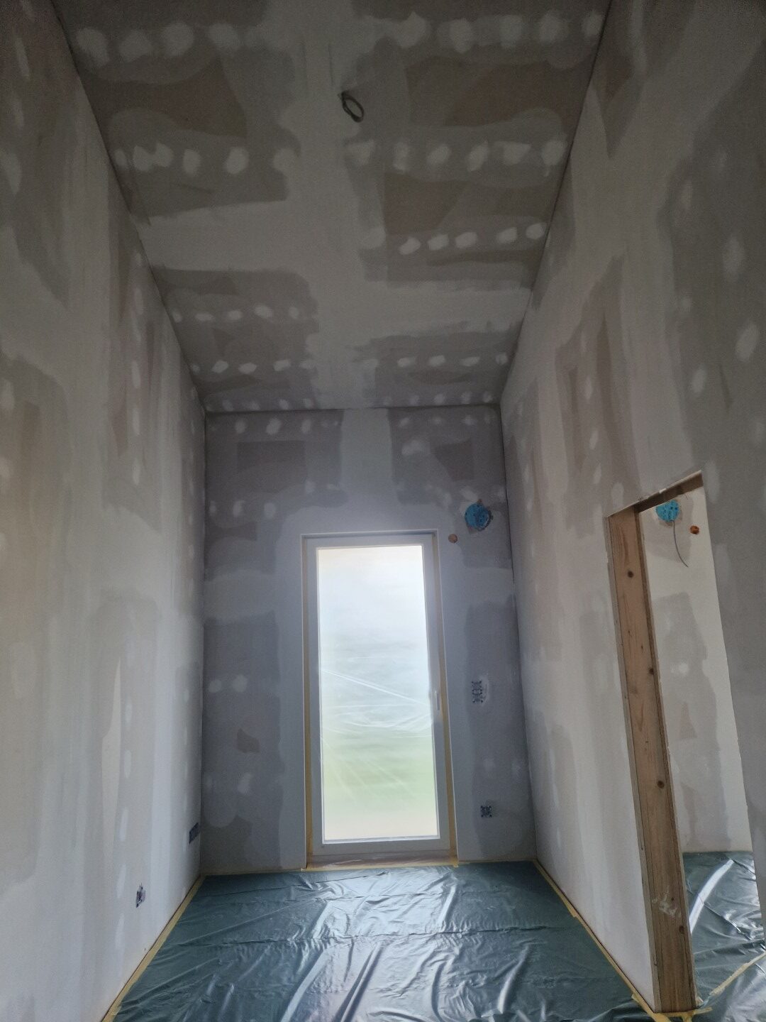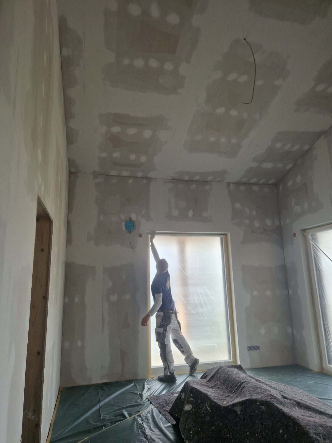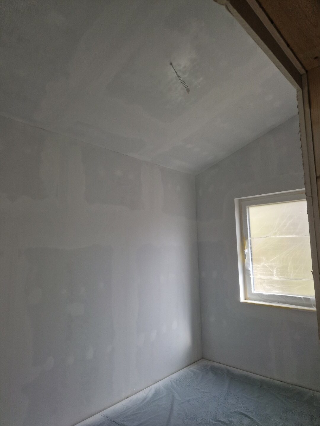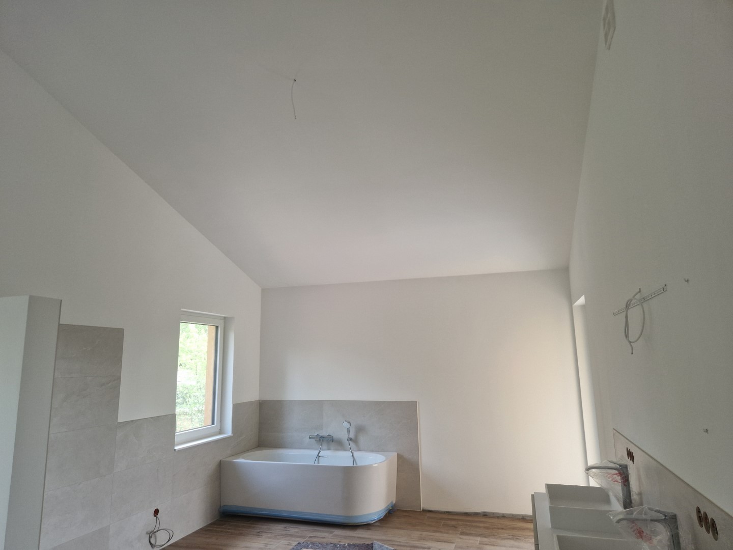 Hier erledigten wir mit unserem Airless-Sprühsystem die Malerarbeiten im Anschluss an die Trockenbauarbeiten.