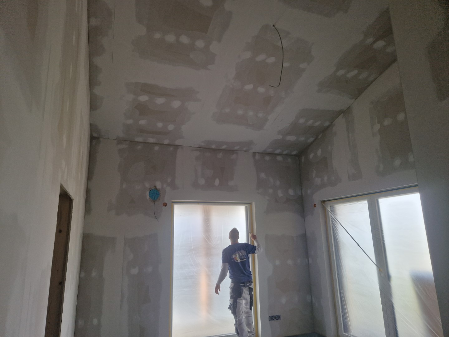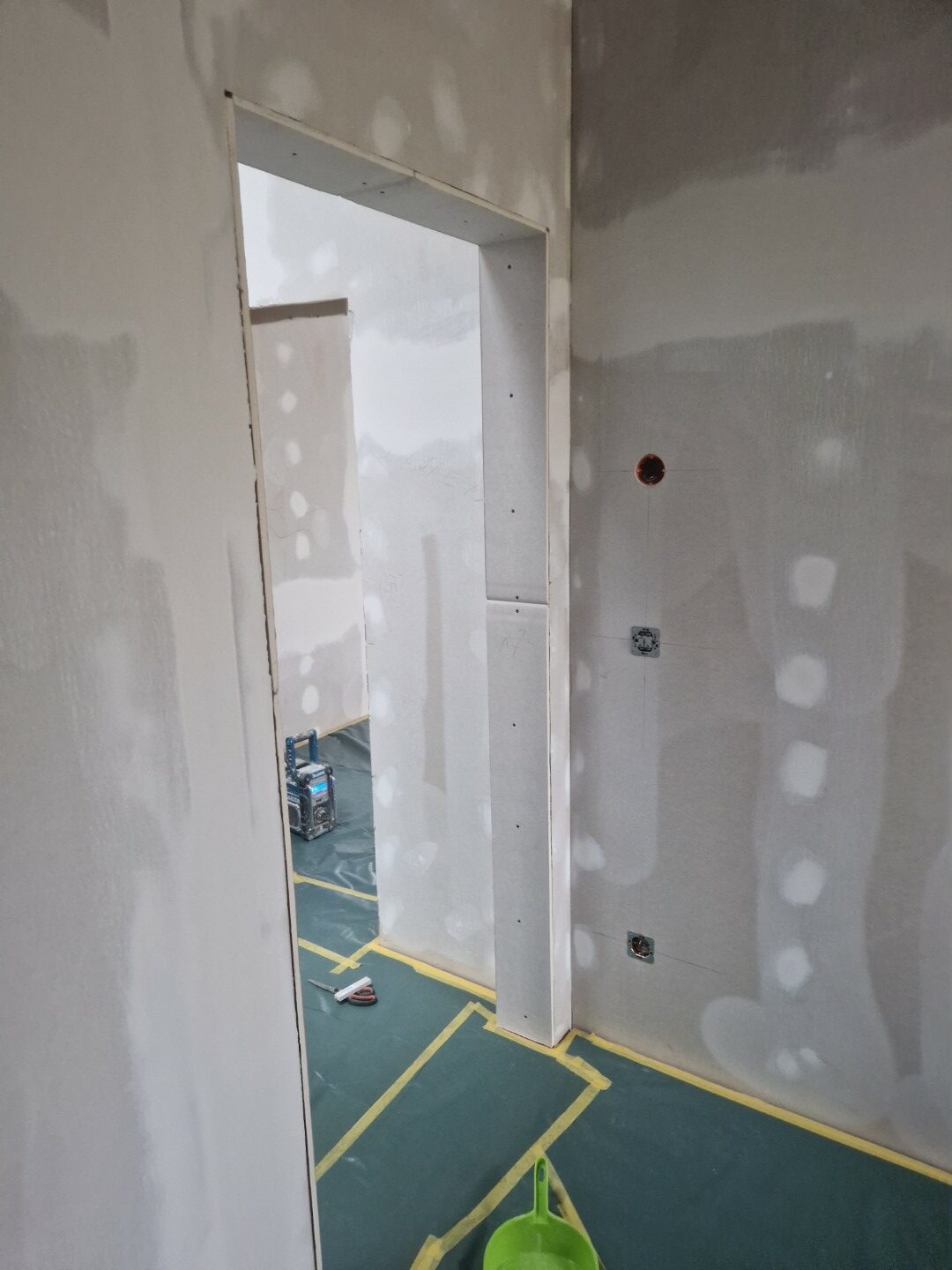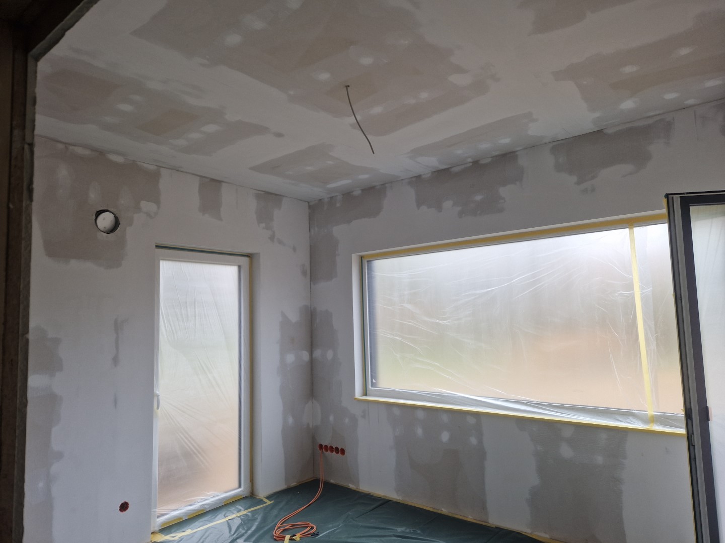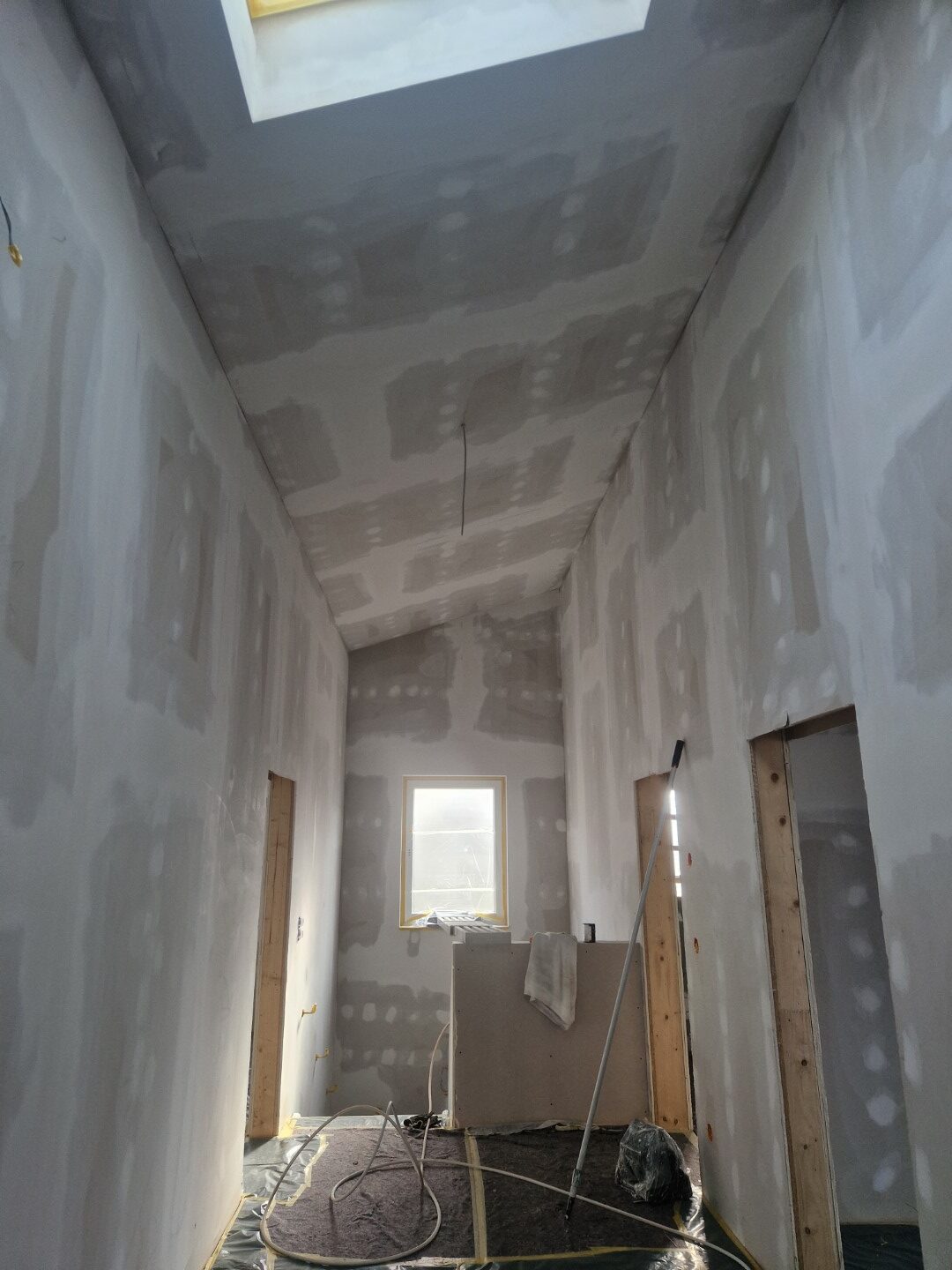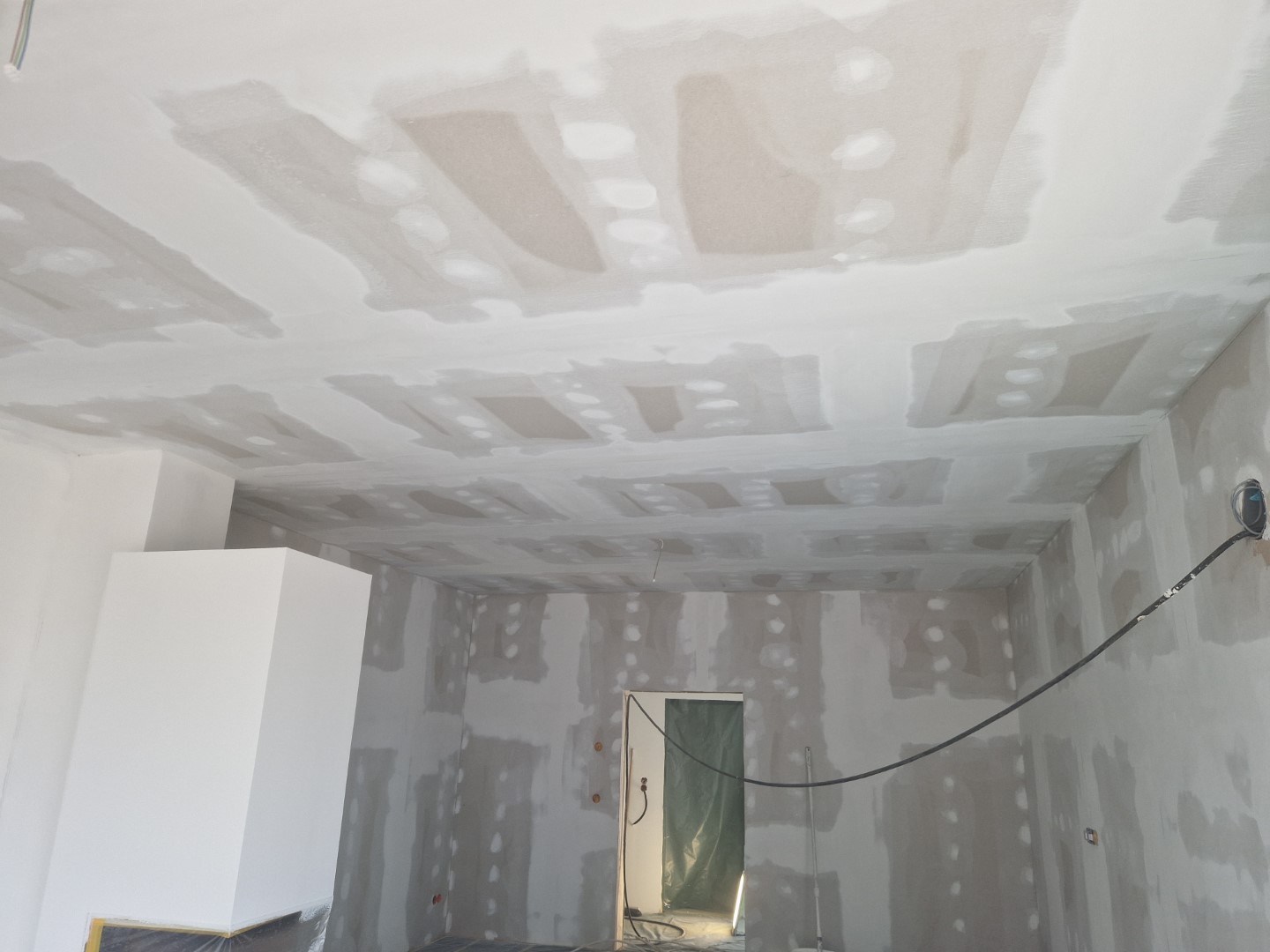 Hier erledigten wir mit unserem Airless-Sprühsystem die Malerarbeiten im Anschluss an die Trockenbauarbeiten.