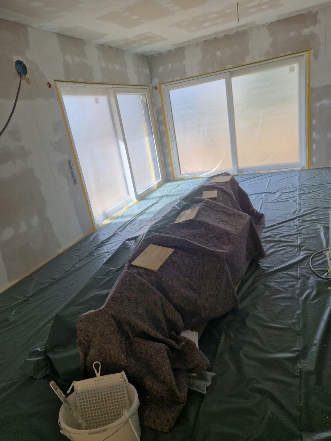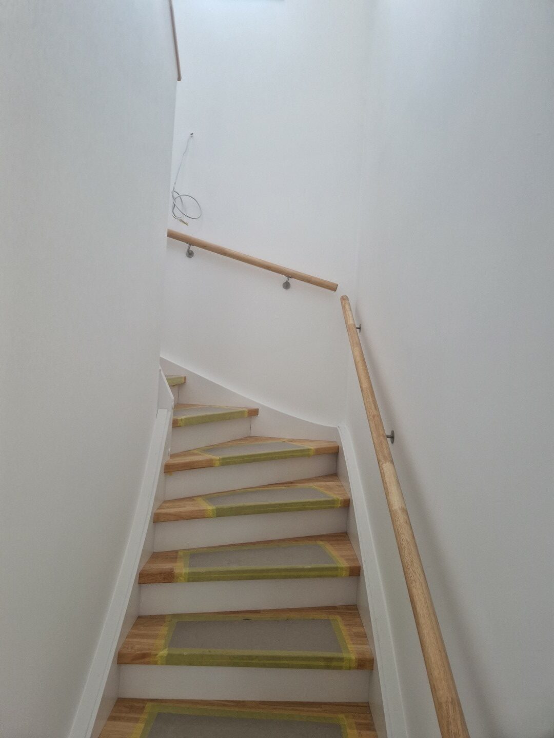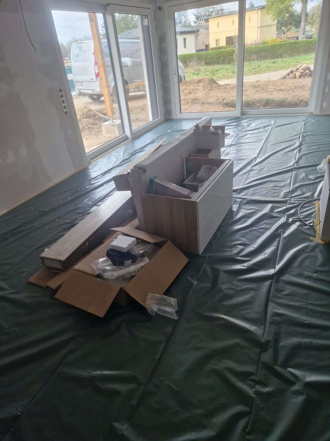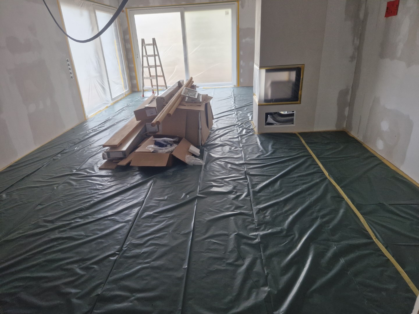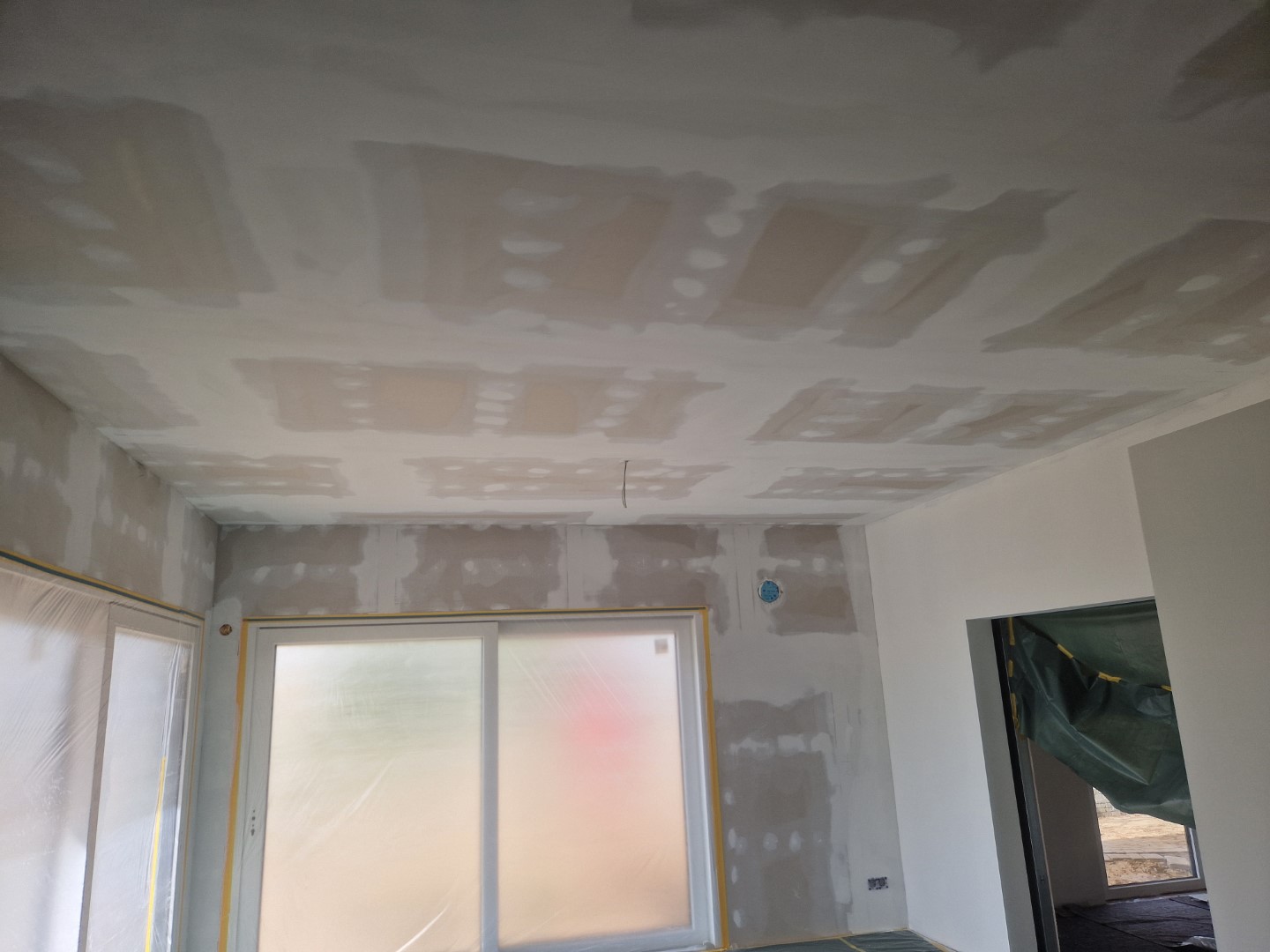 Hier erledigten wir mit unserem Airless-Sprühsystem die Malerarbeiten im Anschluss an die Trockenbauarbeiten.