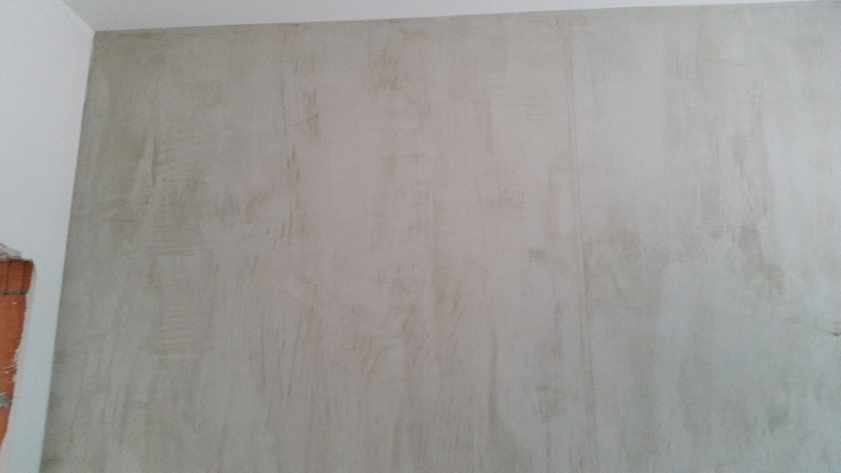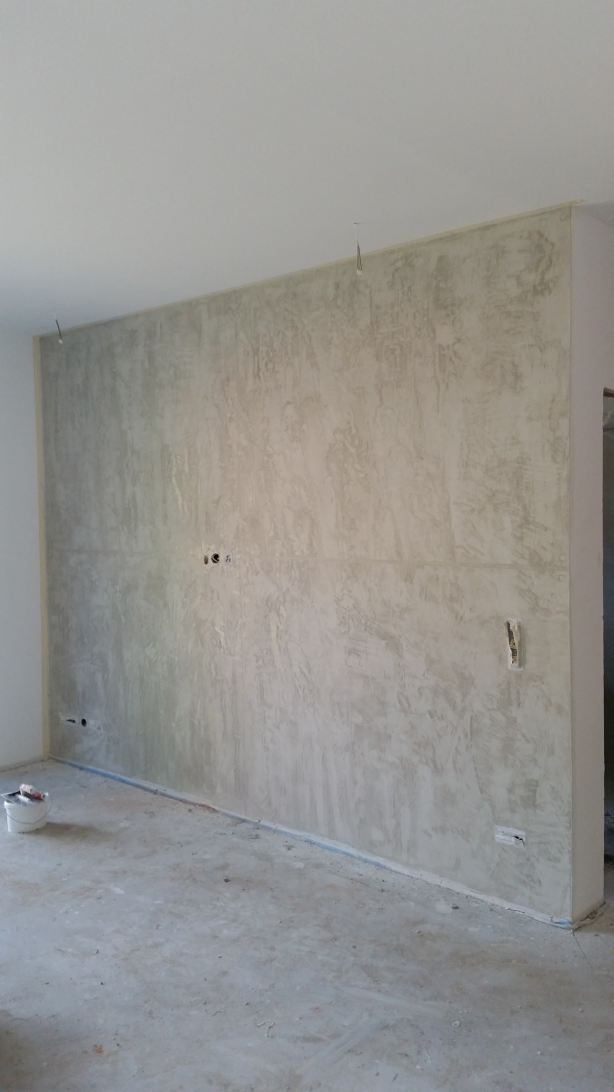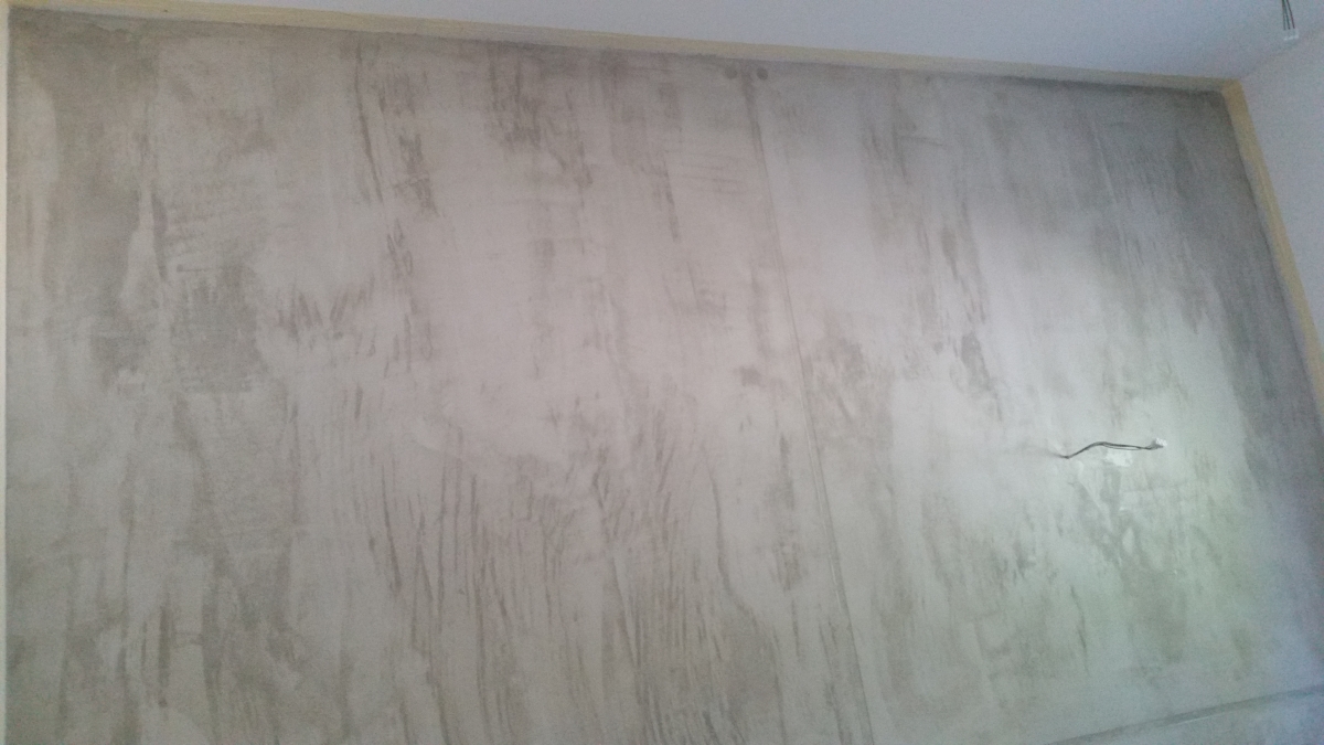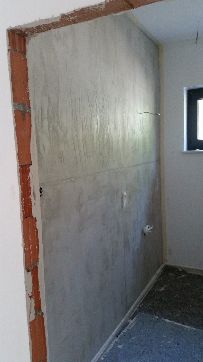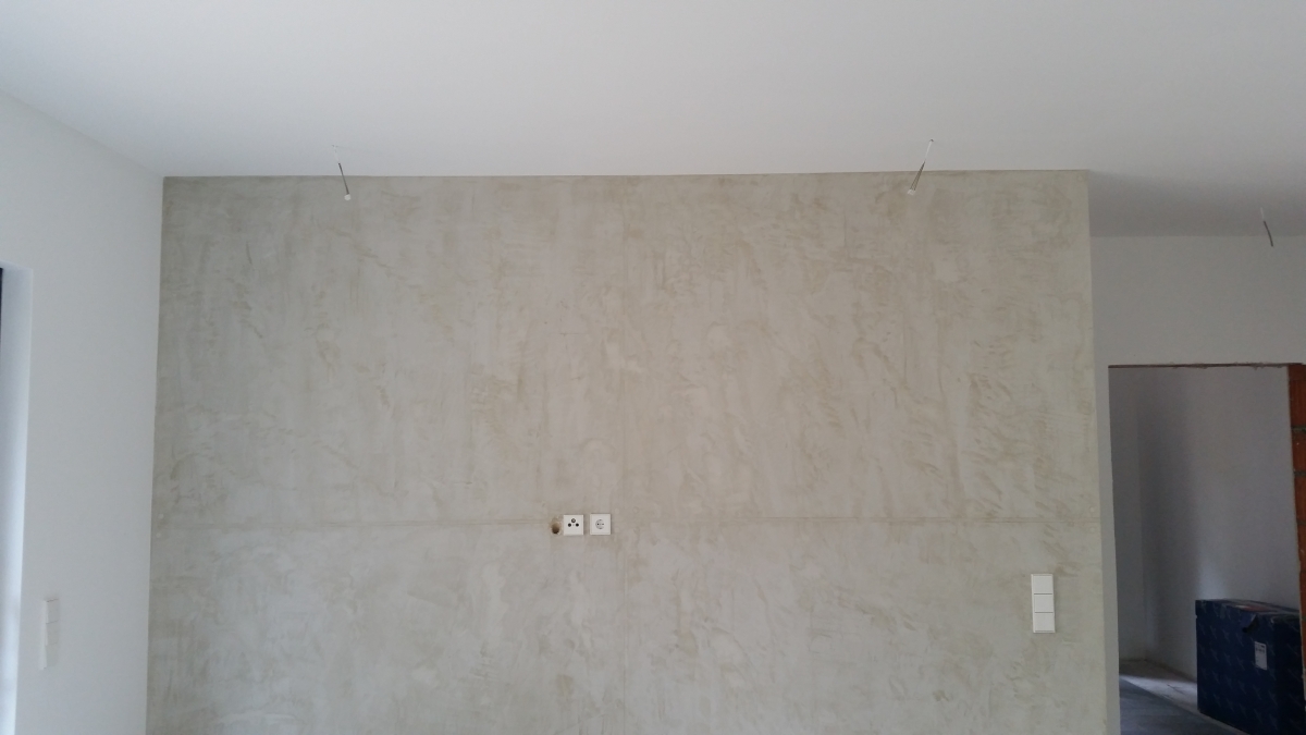Ein schlichter Wandbereich wurde in eine elegante Sichtbetonoptik verwandelt. Diese moderne Gestaltung verleiht dem Raum ein industrielles, zeitloses Ambiente – perfekt für Liebhaber urbaner Wohntrends.